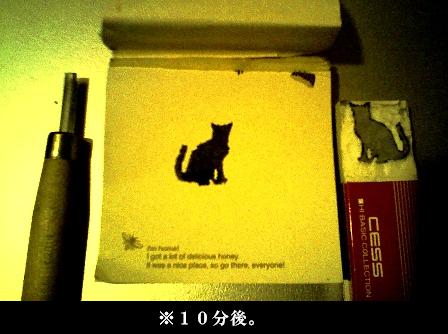 どーでも良いけど、昨日の猫ハンコの反対側に彫りますた。消しゴムカバーで見えないけど、コトリの足元のすぐ傍に、猫の足があります…。