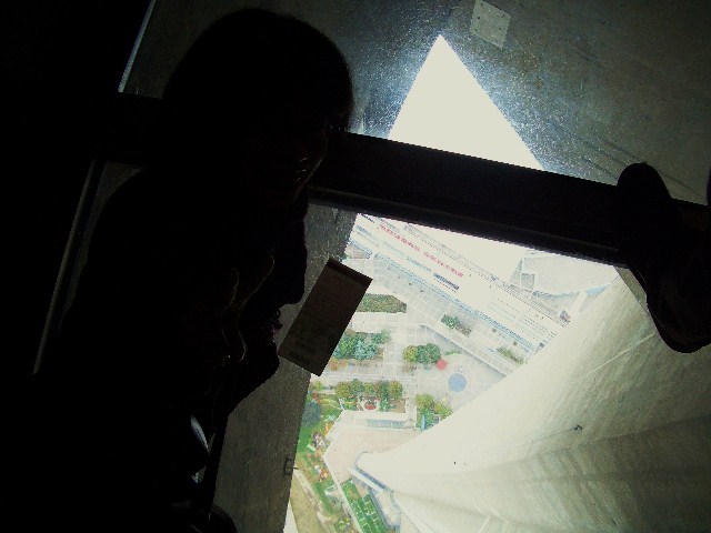 この「CNタワー」、ガラスフロアがあって、こんなこともできませう…。