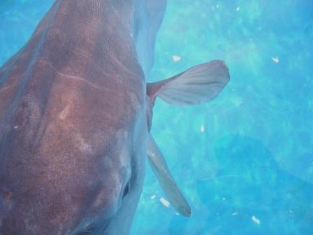 カルチャーセンターの人と間違えたのか、顔を出してパクパクと口を開けるその姿が本当に愛らしいのと同時に、傷ついたその姿がデッカイプールにポツンとあるのが本当に何だか切なくなって…
