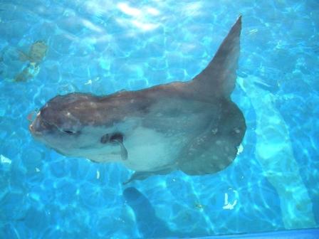 そしてそのマンボウさんたちは、漁師の仕掛けた網に掴まってしまい、傷つき、その手当ても兼ねてマリンカルチャーセンターのプールに安置され、そして元気になったら再び海に放され、大海原の果てのどこかにあるマンボウさんの故郷に帰ってゆくのです…(どこだよ?)