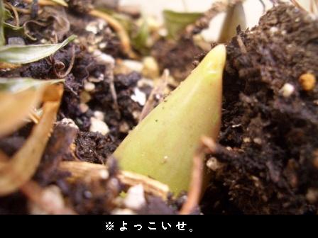 チューリップ3兄弟が芽吹いてスクスクと育っておりますた。